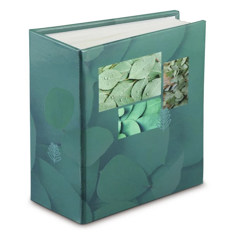 Album Singo green 100 fotografij 10×15 zelen, slip in, z žepki, laminirana platnica z umetniškim tiskom in naravnim motivom, prostor za 100 fotografij 10 x 15 cm, format 13 x 16,5 cm, enostavno vlaganje fotografij v žepke.